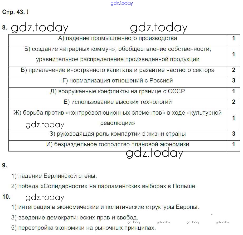 На страницах сайта gdz.today вы найдете учебный и вспомогательный материал, направленный на улучшения знаний школьной программы. ГДЗ - онлайн мир знаний Страницы (решение) 43 Рабочей тетради по Всеобщей истории для 9 класса Пономарев Дрофа УМК 2017
