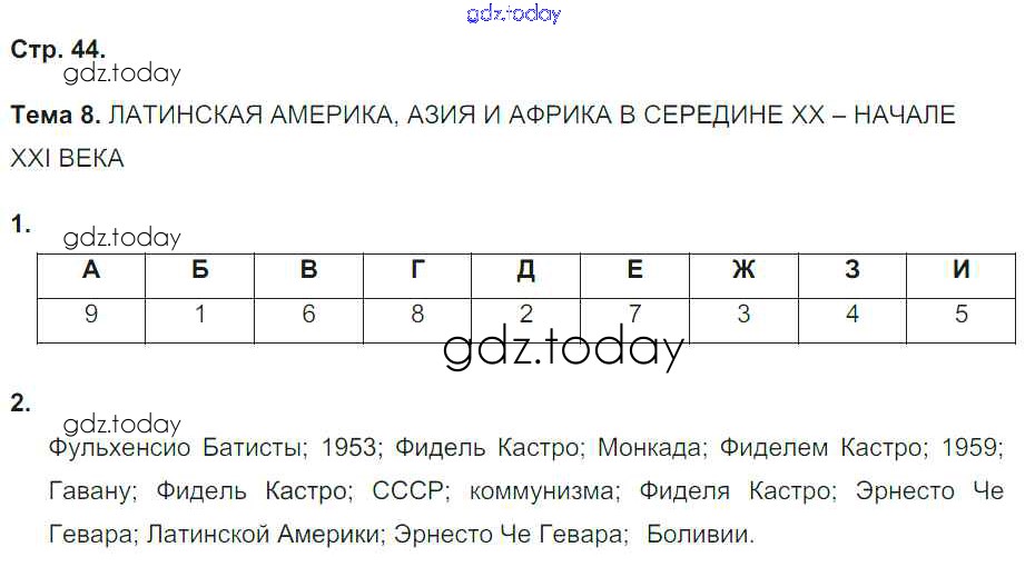 На страницах сайта gdz.today вы найдете учебный и вспомогательный материал, направленный на улучшения знаний школьной программы. ГДЗ - онлайн мир знаний Страницы (решение) 44 Рабочей тетради по Всеобщей истории для 9 класса Пономарев Дрофа УМК 2017