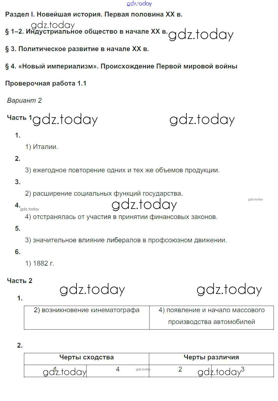 Ответы к Параграфы 1-4 Решение к проверочным работам 2 Проверочным и контрольным работам по Всеобщей истории для 9 класса Баранов Просвещение 2015