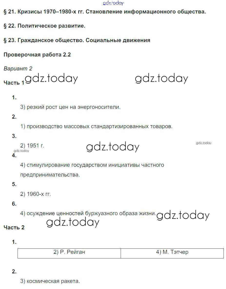 На страницах сайта gdz.today вы найдете учебный и вспомогательный материал, направленный на улучшения знаний школьной программы. ГДЗ - онлайн мир знаний Параграфы 21-23 Решение к проверочным работам 2 Проверочным и контрольным работам по Всеобщей истории для 9 класса Баранов Просвещение 2015
