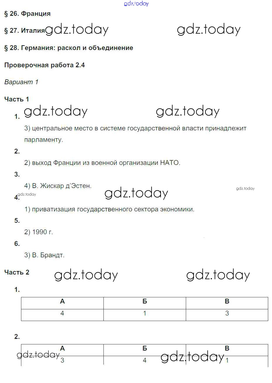 На страницах сайта gdz.today вы найдете учебный и вспомогательный материал, направленный на улучшения знаний школьной программы. ГДЗ - онлайн мир знаний Параграфы 26-28 Решение к проверочным работам 1 Проверочным и контрольным работам по Всеобщей истории для 9 класса Баранов Просвещение 2015