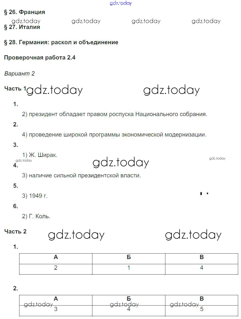Ответы к Параграфы 26-28 Решение к проверочным работам 2 Проверочным и контрольным работам по Всеобщей истории для 9 класса Баранов Просвещение 2015