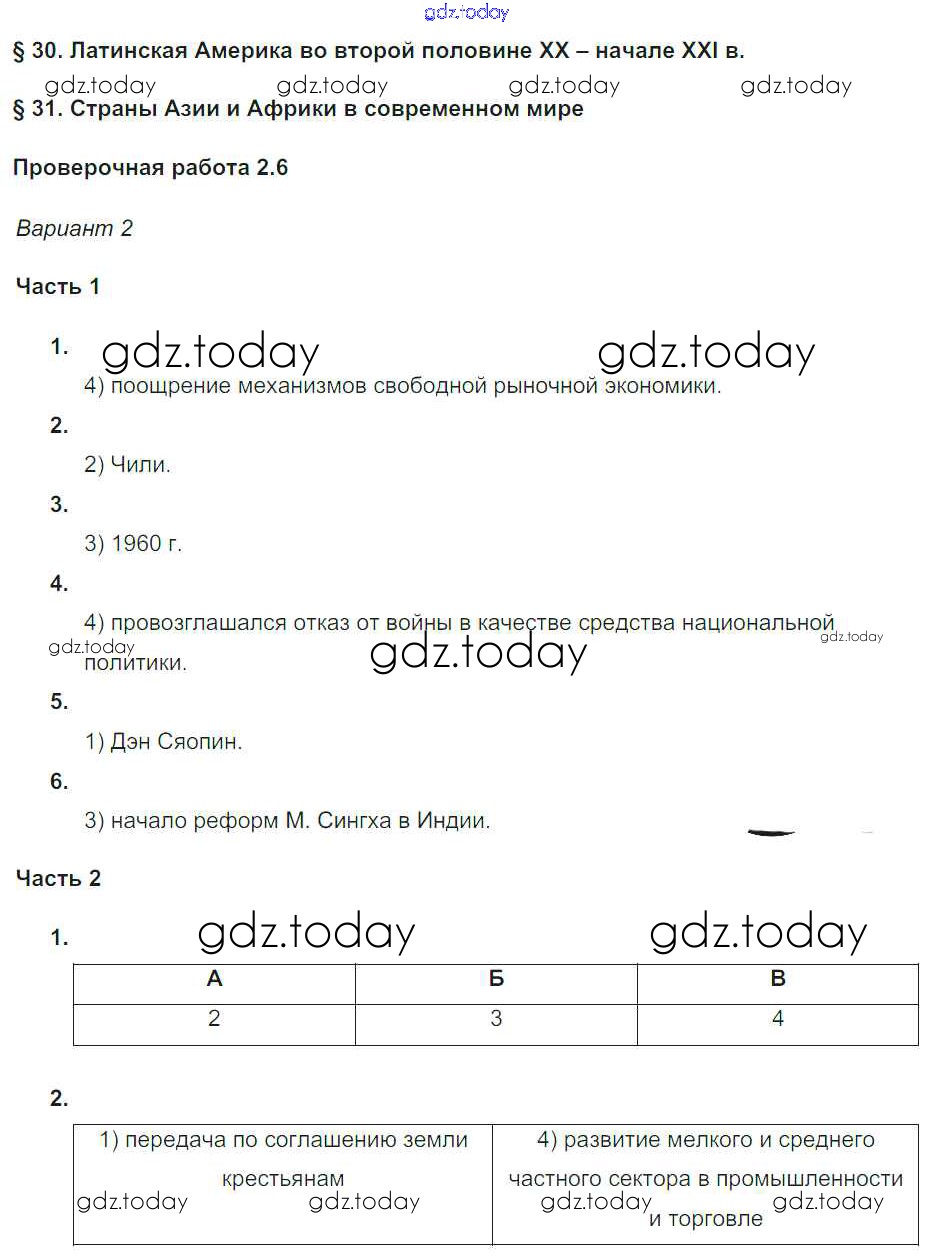 На страницах сайта gdz.today вы найдете учебный и вспомогательный материал, направленный на улучшения знаний школьной программы. ГДЗ - онлайн мир знаний Параграфы 30-31 Решение к проверочным работам 2 Проверочным и контрольным работам по Всеобщей истории для 9 класса Баранов Просвещение 2015