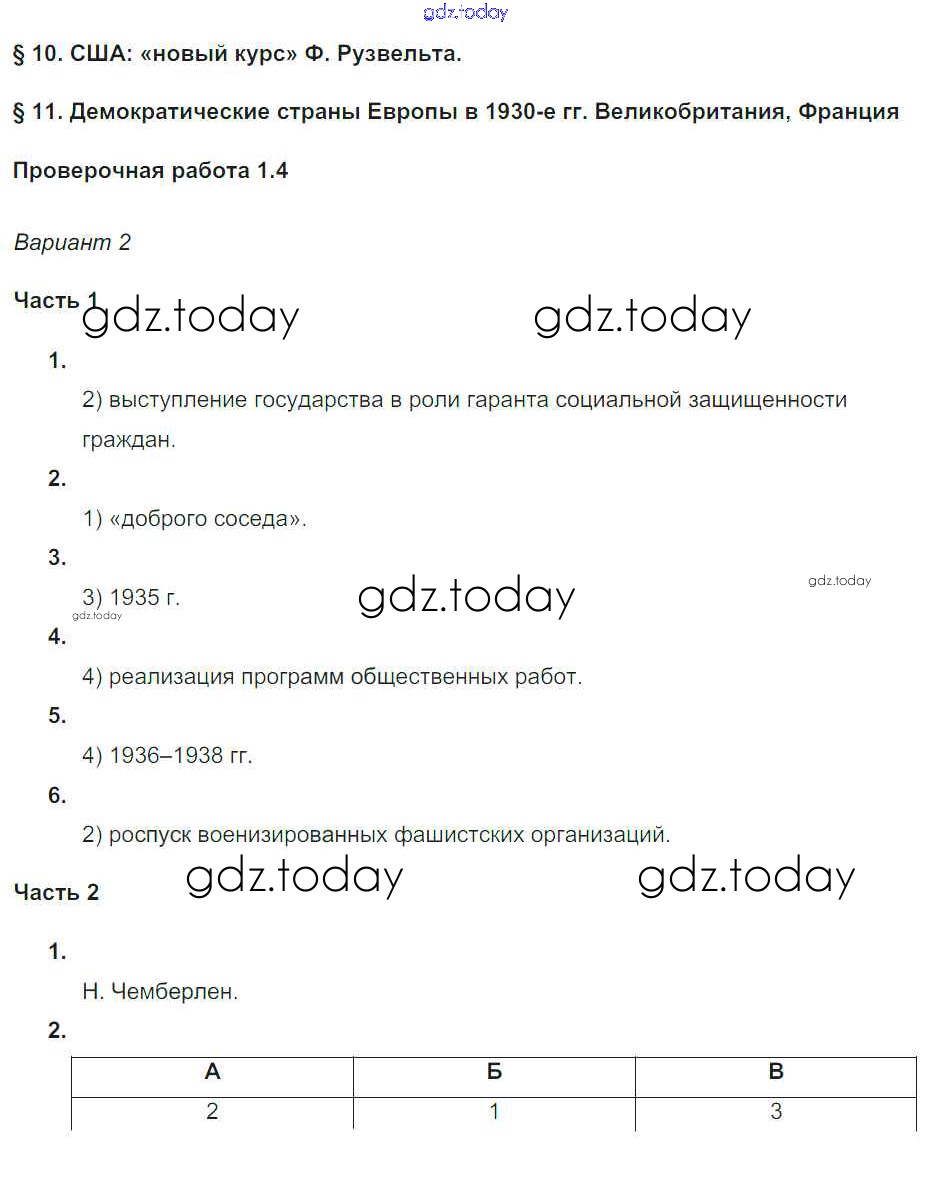 На страницах сайта gdz.today вы найдете учебный и вспомогательный материал, направленный на улучшения знаний школьной программы. ГДЗ - онлайн мир знаний Параграфы 10-11 Решение к проверочным работам 2 Проверочным и контрольным работам по Всеобщей истории для 9 класса Баранов Просвещение 2015