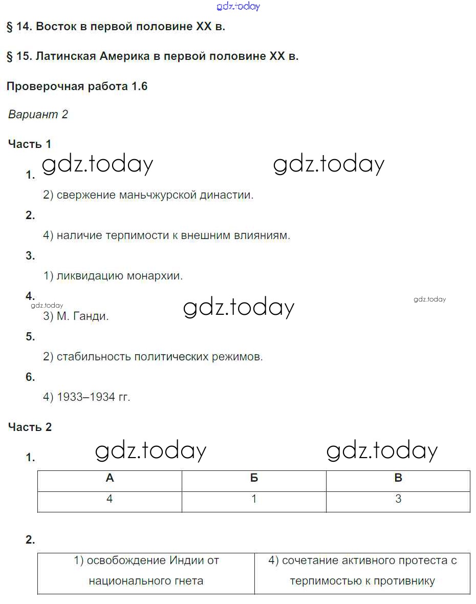 На страницах сайта gdz.today вы найдете учебный и вспомогательный материал, направленный на улучшения знаний школьной программы. ГДЗ - онлайн мир знаний Параграфы 14-15 Решение к проверочным работам 2 Проверочным и контрольным работам по Всеобщей истории для 9 класса Баранов Просвещение 2015