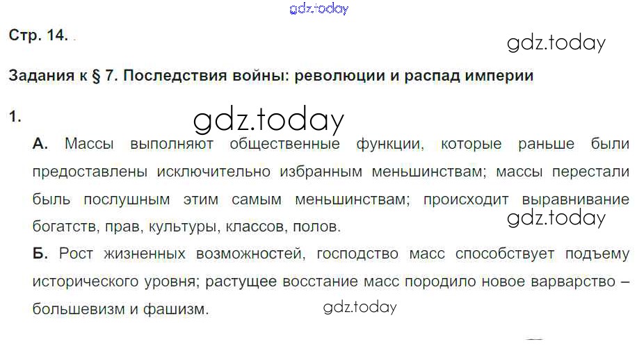 На страницах сайта gdz.today вы найдете учебный и вспомогательный материал, направленный на улучшения знаний школьной программы. ГДЗ - онлайн мир знаний Страницы (решение) 14 Рабочей тетради по Всеобщей истории для 9 класса Сороко-Цюпа Просвещение УМК 2014