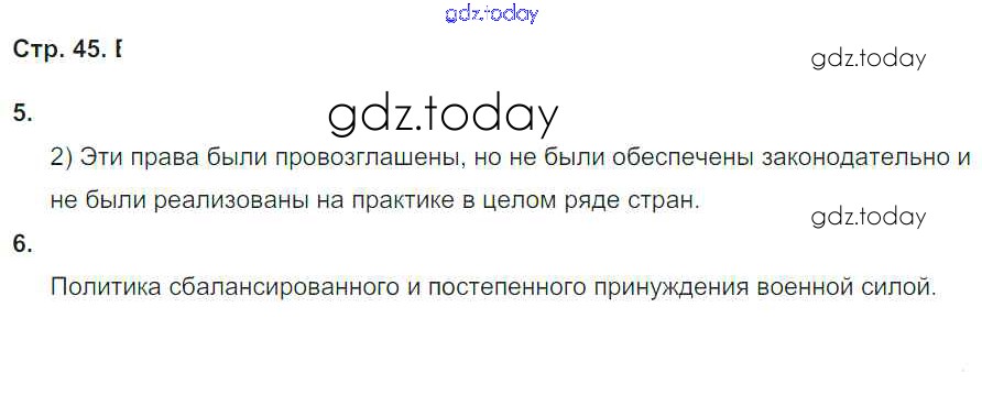 На страницах сайта gdz.today вы найдете учебный и вспомогательный материал, направленный на улучшения знаний школьной программы. ГДЗ - онлайн мир знаний Страницы (решение) 45 Рабочей тетради по Всеобщей истории для 9 класса Сороко-Цюпа Просвещение УМК 2014