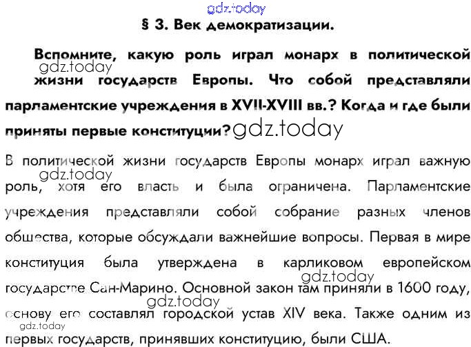 На страницах сайта gdz.today вы найдете учебный и вспомогательный материал, направленный на улучшения знаний школьной программы. ГДЗ - онлайн мир знаний Вспомните §3 1 Учебнику по Всеобщей истории для 9 класса Юдовская, Баранов Просвещение 2019