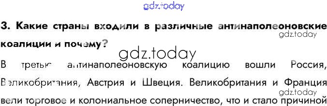 На страницах сайта gdz.today вы найдете учебный и вспомогательный материал, направленный на улучшения знаний школьной программы. ГДЗ - онлайн мир знаний Вопросы §8 3 Учебнику по Всеобщей истории для 9 класса Юдовская, Баранов Просвещение 2019