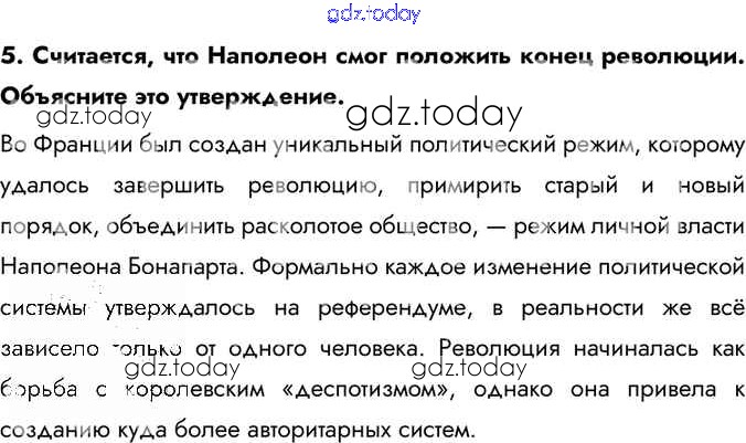 На страницах сайта gdz.today вы найдете учебный и вспомогательный материал, направленный на улучшения знаний школьной программы. ГДЗ - онлайн мир знаний Вопросы §8 5 Учебнику по Всеобщей истории для 9 класса Юдовская, Баранов Просвещение 2019