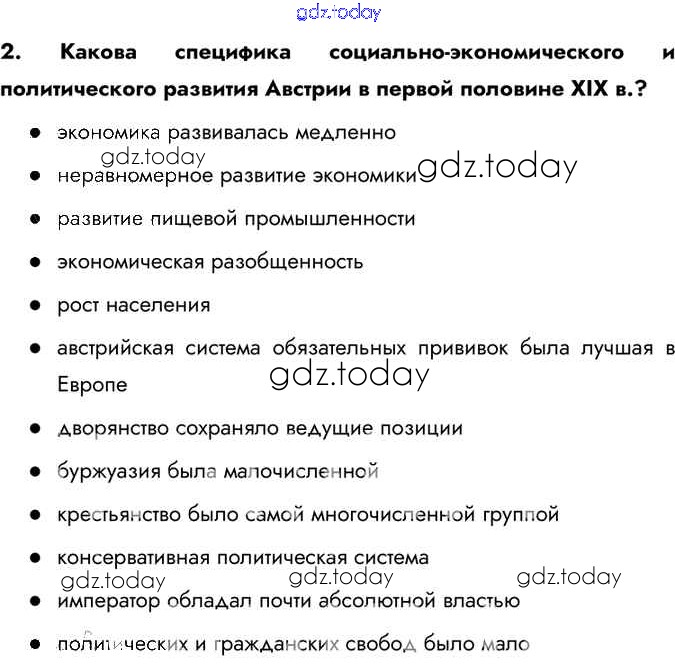 На страницах сайта gdz.today вы найдете учебный и вспомогательный материал, направленный на улучшения знаний школьной программы. ГДЗ - онлайн мир знаний Вопросы §13 2 Учебнику по Всеобщей истории для 9 класса Юдовская, Баранов Просвещение 2019