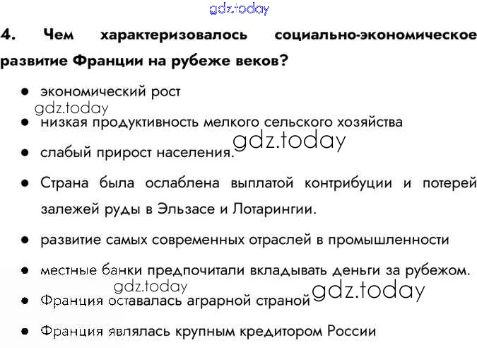 На страницах сайта gdz.today вы найдете учебный и вспомогательный материал, направленный на улучшения знаний школьной программы. ГДЗ - онлайн мир знаний Вопросы §19 4 Учебнику по Всеобщей истории для 9 класса Юдовская, Баранов Просвещение 2019