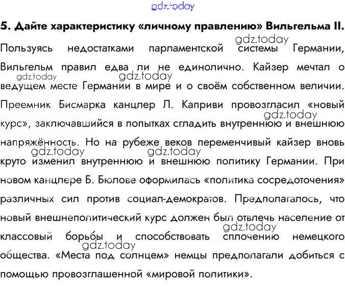 На страницах сайта gdz.today вы найдете учебный и вспомогательный материал, направленный на улучшения знаний школьной программы. ГДЗ - онлайн мир знаний Вопросы §20 5 Учебнику по Всеобщей истории для 9 класса Юдовская, Баранов Просвещение 2019