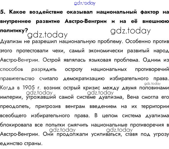 На страницах сайта gdz.today вы найдете учебный и вспомогательный материал, направленный на улучшения знаний школьной программы. ГДЗ - онлайн мир знаний Вопросы §21 5 Учебнику по Всеобщей истории для 9 класса Юдовская, Баранов Просвещение 2019
