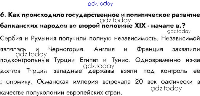 На страницах сайта gdz.today вы найдете учебный и вспомогательный материал, направленный на улучшения знаний школьной программы. ГДЗ - онлайн мир знаний Вопросы §21 6 Учебнику по Всеобщей истории для 9 класса Юдовская, Баранов Просвещение 2019