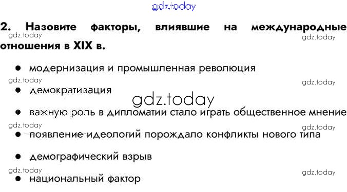 На страницах сайта gdz.today вы найдете учебный и вспомогательный материал, направленный на улучшения знаний школьной программы. ГДЗ - онлайн мир знаний Вопросы §24 2 Учебнику по Всеобщей истории для 9 класса Юдовская, Баранов Просвещение 2019