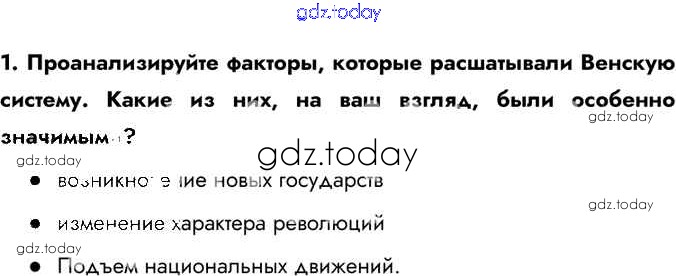 На страницах сайта gdz.today вы найдете учебный и вспомогательный материал, направленный на улучшения знаний школьной программы. ГДЗ - онлайн мир знаний Задания §24 1 Учебнику по Всеобщей истории для 9 класса Юдовская, Баранов Просвещение 2019